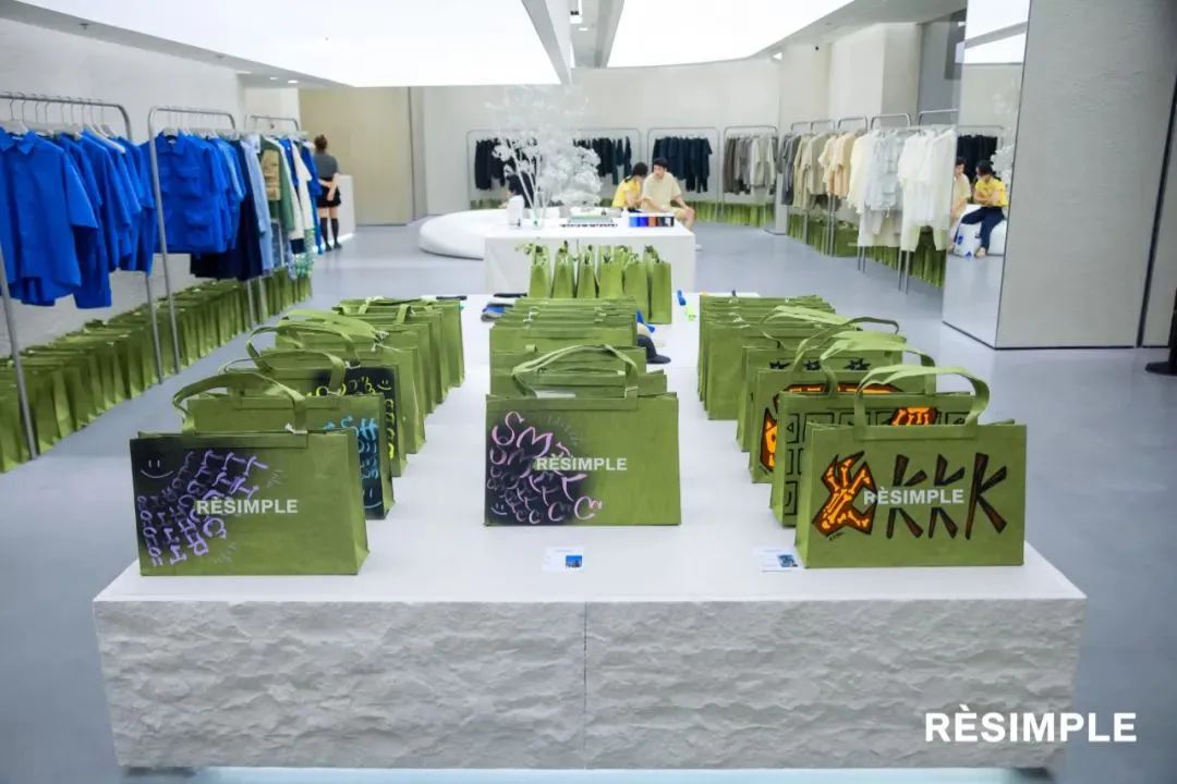 2022年4月30日,RèSIMPLE全国首店亮相杭州嘉里中心,门店的墙壁及地面都统一运用了白色系,体现品牌极简风格,与其品牌核心相契合。在室内装修设计上,该店也保留了原材料的生态肌理和质感,回归自然、简单,与服装材质相呼应;还采用极为简单的家具,风格相当统一。
