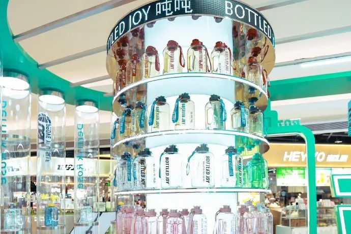吨吨BOTTLED JOY第一家线下门店在去年5月1日登陆深圳前海壹方城。体验店外侧巨大的“吨”字格外醒目,在半透明的空间里,造型极具特色的吨吨桶引发关注;该店还首次在线下展现了全系列产品,除了经典的爆款吨吨桶,还有包含了明星款吨吨桶、跨界IP吨吨桶、概念吨吨桶在内的“吨吨家族”。年内,吨吨BOTTLED JOY还在深圳海雅缤纷城、海岸城开出新店。