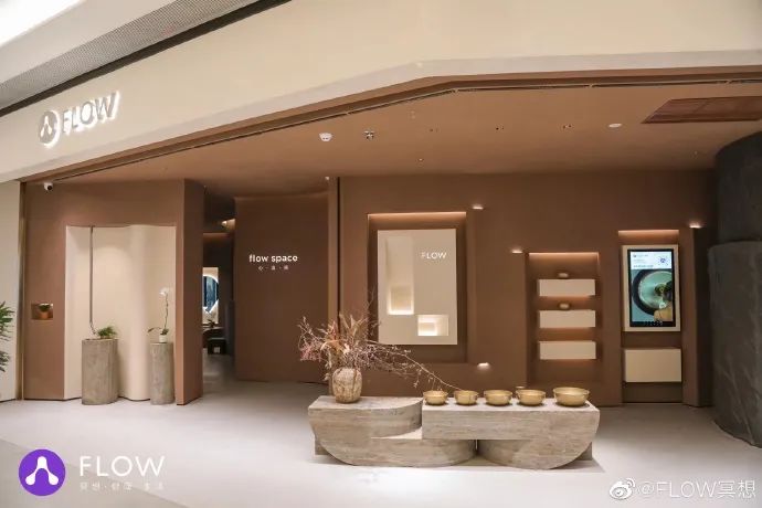 2022年10月13日,FLOW冥想旗下首家线下空间“FLOW心流所”在上海苏河湾万象天地正式开业。该店以“张力和方向”为设计主题,赭石色为空间主色调,在空间内设有大冥想教室和小冥想教室,推出冥想、瑜伽、呼吸、音疗和疗愈等课程,还融入可做精细的明暗调节的室内光源,营造出流动的光影和呼吸感,为大众带来内心的安宁。