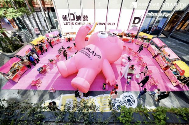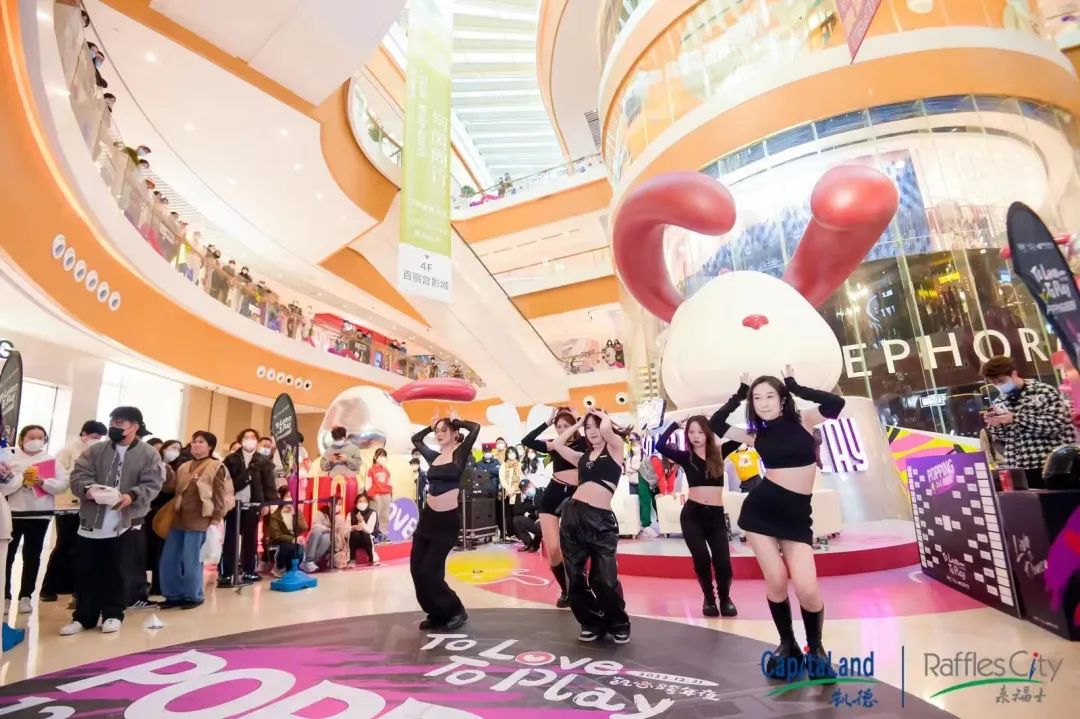 元旦期间,深圳来福士广场跨界独立IP TWO兔,合作打造“TO LOVE TO PLAY”凯心季,TWO兔的外形十分前卫并且科技感十足,很好地诠释了凯德“凯心季”活力、潮流、欢乐的基因,同时大幅促进了商场客流和销售的回暖。