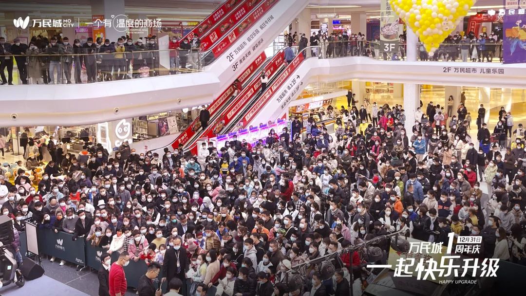 元旦期间,广州万民城借助项目一周年的契机,开启了“一起快乐升级”活动,通过20w大抽奖、超级生日蛋糕、迎新跨年晚会、跨年现金气球雨等活动吸引客流到场消费。实现了1月1日当天客流近3万,销售额近两百万;1月2日客流2.2万,销售额破百万的成绩。