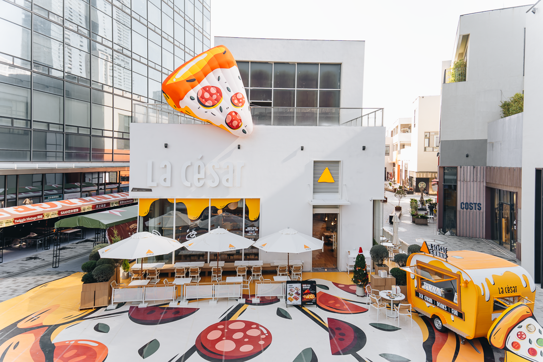 去年12月底,乐凯撒深圳第100家直营店落地深业上城L3小镇东广场的一座独栋建筑。从其外立面来看,如漫画风格的黄白配奶油屋、标志性三角披萨门头、巨大的披萨彩绘地板以及黄色披萨小车吸睛亮眼,吸引不少年轻人前去打卡品尝美食。据悉,开业一周,该门店便登上大众点评西餐热门榜TOP1。