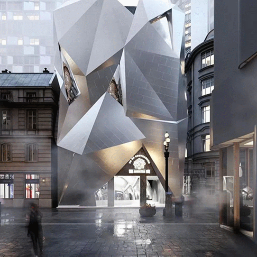 去年6月底,国内首家“顽徒 ADDICTEA”以“五指山”作为“大圣归来”空间设计灵感,落地于武汉地标性商圈核心地段江汉路步行街。顽徒武汉旗舰店是全球首家概念店,为1200㎡的6层独栋建筑。其外立面由不规则的银白色轻型铝板以及形状不一的镜面所构建,形成独特的现代科技风,具备较强的辨识度。
