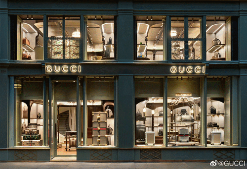 去年12月20日,Gucci(古驰)在巴黎时尚最前沿的圣奥诺雷街开设品牌首家行李箱专卖店。该行李箱专卖店为约270㎡的两层建筑,内部设计由奢华火车旅行汲取灵感。在以火车站为原型的一楼,还原上个世纪火车站情景,如像行李手推车的中心独立货架、像火车站迎宾台的收银台等。在以老式火车上为原型的二楼,独特设计模仿老式火车拱形屋顶的天花板,配合格子呢图案的机织地毯和豪华座椅,展现具有年代感的醇厚氛围。