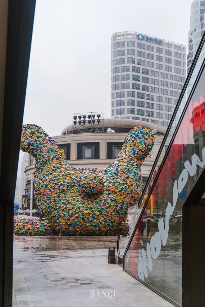 兔年新春,在兴业太古汇南京西路路口,一只被放大百倍长达10米的五彩倒立兔,被无数“彩色碎片”覆盖,全身洋溢着庆祝的氛围。