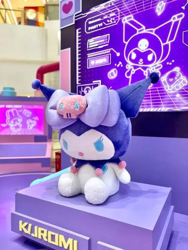展陈现场划分为高5米的巨型奶茶杯装置、美乐蒂的手作缝纫区、酷洛米的机械制作区及其他商品区,并设置拍照打卡处等功能区域,整体保持一贯活泼Q萌的视觉效果,融合休闲娱乐购物等多个场景于一体,为消费者打造“全场景”休闲体验空间。
