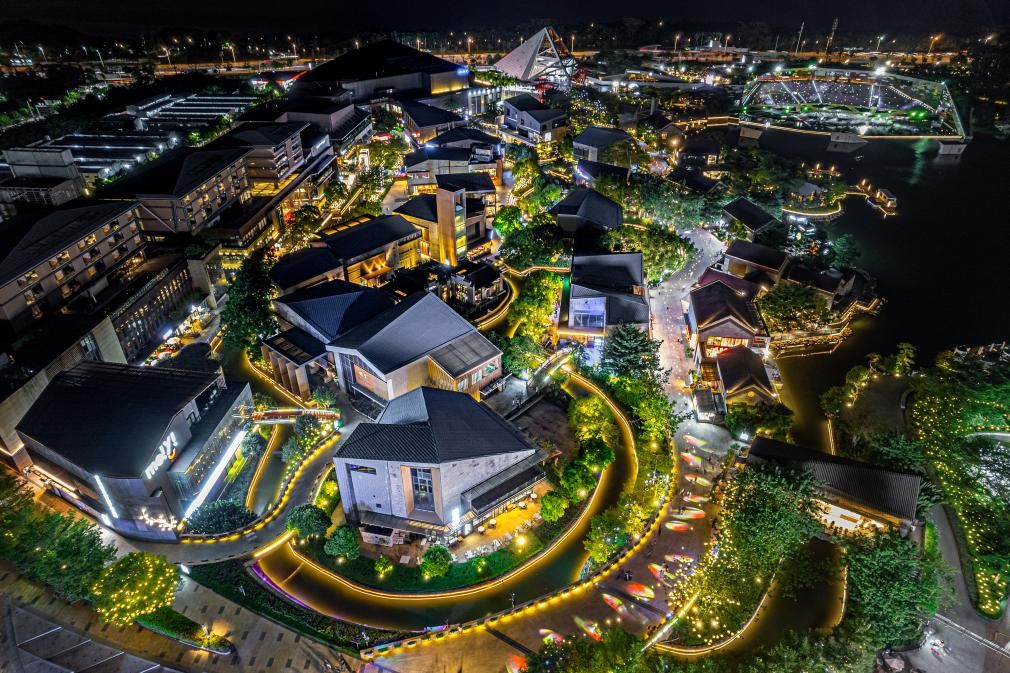 搭载光影,欢乐海岸利用主题商业为城市空间激活巨大能量。在近62万平米夜间开放经营场域中,欢乐海岸构筑“夜演、夜游、夜购、夜趣、夜宴”立体式夜间消费体验,结合园区主题商业,构建多元商业消费触点。结合新消费趋势,园区商户在夜经济发展生态下开展全新跨界融合尝试。多元化的商业消费场景产生乘兴而至的吸引力,消费者能在湖边露营、围炉煮茶,体验日咖夜酒、观赏烟花,在蔚来、大众、奔驰smart、岚图等近10家新能源汽车品牌店体验未来出行的消费方式,在大疆、华为智能家居生活馆、小米之家等科技品牌店感受年轻潮玩的消费魅力等。各类夜生活的选择不断丰富,为消费者带来夜间“潮”生活的新创想。