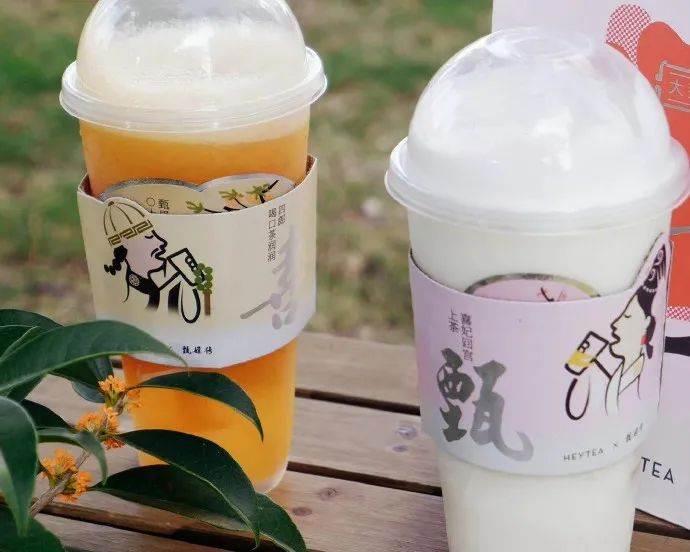 而在《梦华录》热播期间,喜茶推出一系列联名活动,如在产品上推出紫苏·粉桃饮、梦华茶喜·点茶两款定制联名特调茶饮,主题门店内更有调饮师现场致敬于茶汤上作画的“茶百戏”的技艺,让观众体验沉浸式追剧。去年10月,喜茶还与《甄嬛传》联名,推出喜茶饮品甄奶·雪酿含翠和甄果·大橘画梨以及周边产品。