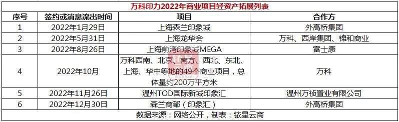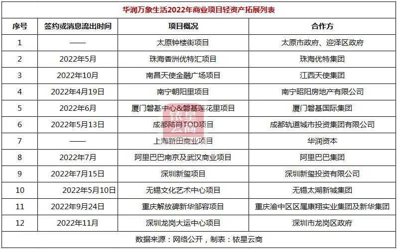 因此众多房产开发企业均将轻资产输出作为重要战略(有些房产开发企业甚至完全从开发转换到轻资产运营),并且在轻资产项目拓张上颇有斩获,这其中有深耕商业运营多年的老牌商管集团,也有积累丰富行业经验但近两年才加码轻资产的商管企业;亦有基于自身发展战略调整而发力轻资产的"后浪"地产公司…为了对国内轻资产版图有相对清晰的认知,铱星云商仔细梳理了20家零售物业商管企业在2022年轻资产外拓清单,供行业从业小伙伴参考借鉴。