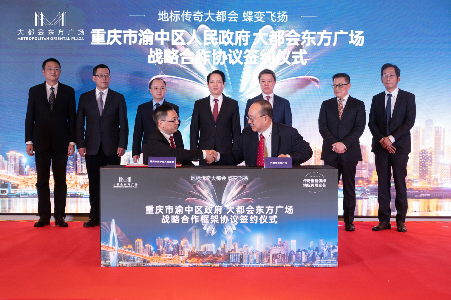 在各领导嘉宾的参与和期待中, 大都会东方广场蝴蝶计划发布会暨全球招商启动仪式圆满完成, 代表具有解放碑高端商业形象与重庆都会国际气质的城市商业地标, 正式蝶变飞扬!