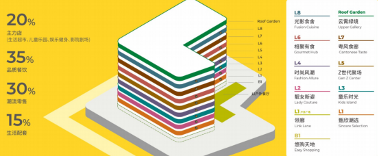 根据不同楼层的定位属性,重点打造24小时都市生活街区、一站式儿童乐园、Z世代聚场、粤风食廊等业态新亮点。