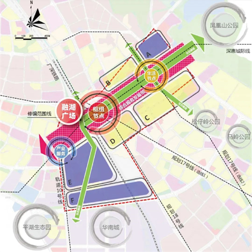平湖枢纽项目汇集7条轨道,借助TOD模式启动城市更新和发展的引擎。未来,这里将成为深圳中北部的新门户、文化商业的聚集地、高品质的住宅和办公核心区,以及深莞惠城市带的几何中心。