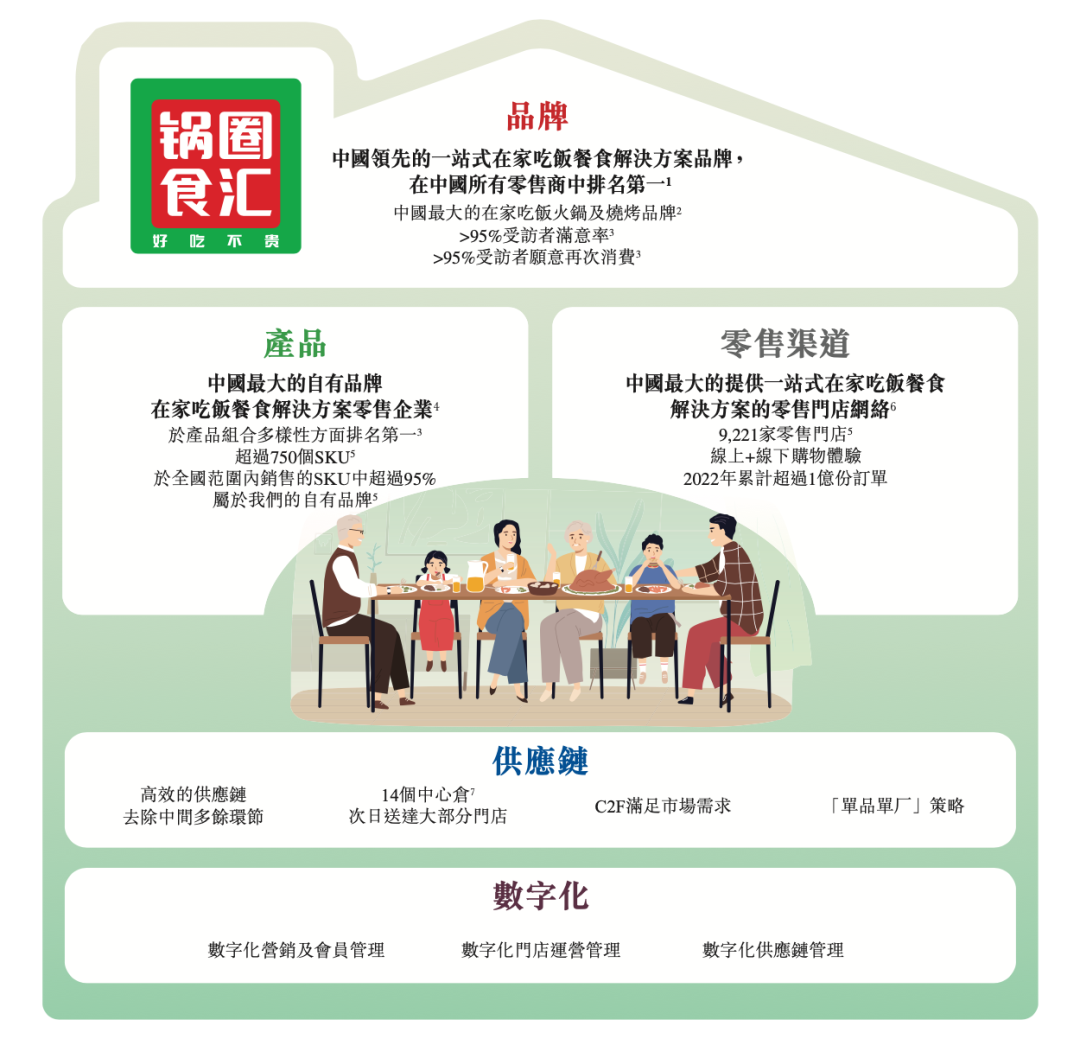 4月3 日晚间,中国领先的家庭餐饮解决方案品牌锅圈食品 ( 上海 ) 股份有限公司正式向港交所递交招股说明书,拟主板挂牌上市。锅圈为消费者提供即食食品、即热食品、即烹食品或即配食品的一站式在家吃饭餐食解決方案。截至2022年年底,锅圈提供的产品组合主要是八大类,包括火锅产品、烧烤产品、饮料、一人食、即烹餐包、生鲜食品、西餐和零食,合计有755个SKU。