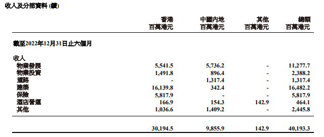 2023年2月23日,新世界发展发布截至2022年12月31日的2022/2023年度中期业绩公告。公告显示,新世界发展2022年下半年包括香港和内地的投资物业总收入23.88亿港元,同比下降5.1%。