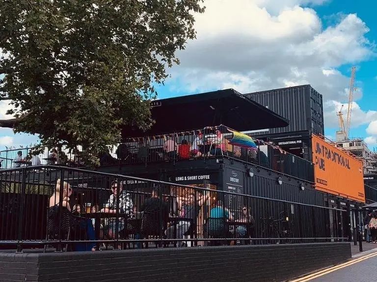 来自英国的一个集装箱商业街,被命名为Crate St James Street。该项目由数十个集装箱改造、裁剪、拼接而成。Crate St James Street以工业风为主,整体以黑色为主体色调,打破了传统商业空间条条框框的限制,也更凸显了建筑的创意。