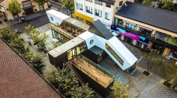 早在2018年,星巴克在中国台湾花莲开出其亚洲首家集装箱门店,该店占地面积为320平方米,,门店由日本著名建筑设计师隈研吾操刀,将29个白色集装箱为主题堆叠打造出倒金字塔型的四层建筑,保留集装箱特色的同时亦融入了花莲在地文化,顾客坐在店内就可以欣赏到花莲洄澜湾的山川和海景。