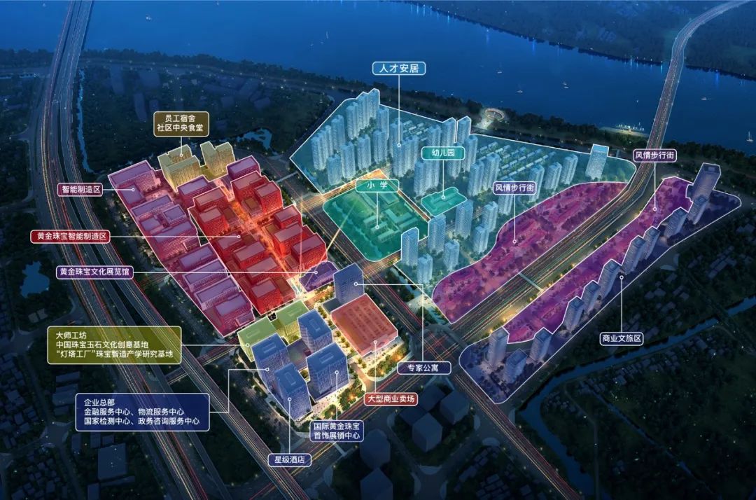 据了解,黄金珠宝创新生态城项目规划总面积约1600亩,位于佛山十大特色制造业园区之一“佛山伦教珠宝时尚产业园”的核心位置。项目的建设目标是朝着大湾区首个产业链条最完整、功能配套最完善的产城标杆项目进行打造。
