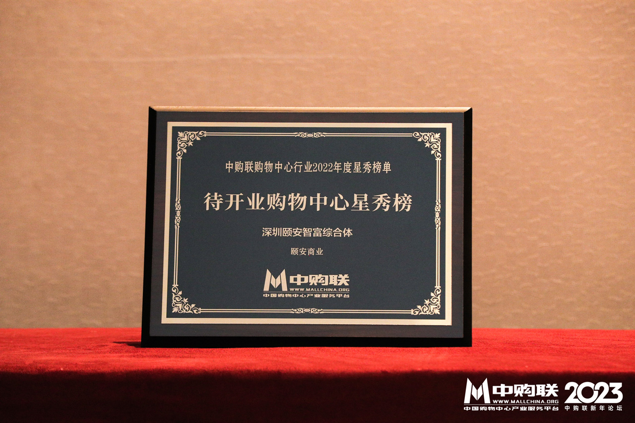 颐安商业旗下颐安智富综合体项目继获得“Golden Mall中购联购物中心行业2022年度城市推动卓越榜”后,再次荣登“中购联购物中心行业2022年度星秀榜单——待开业购物中心星秀榜”。