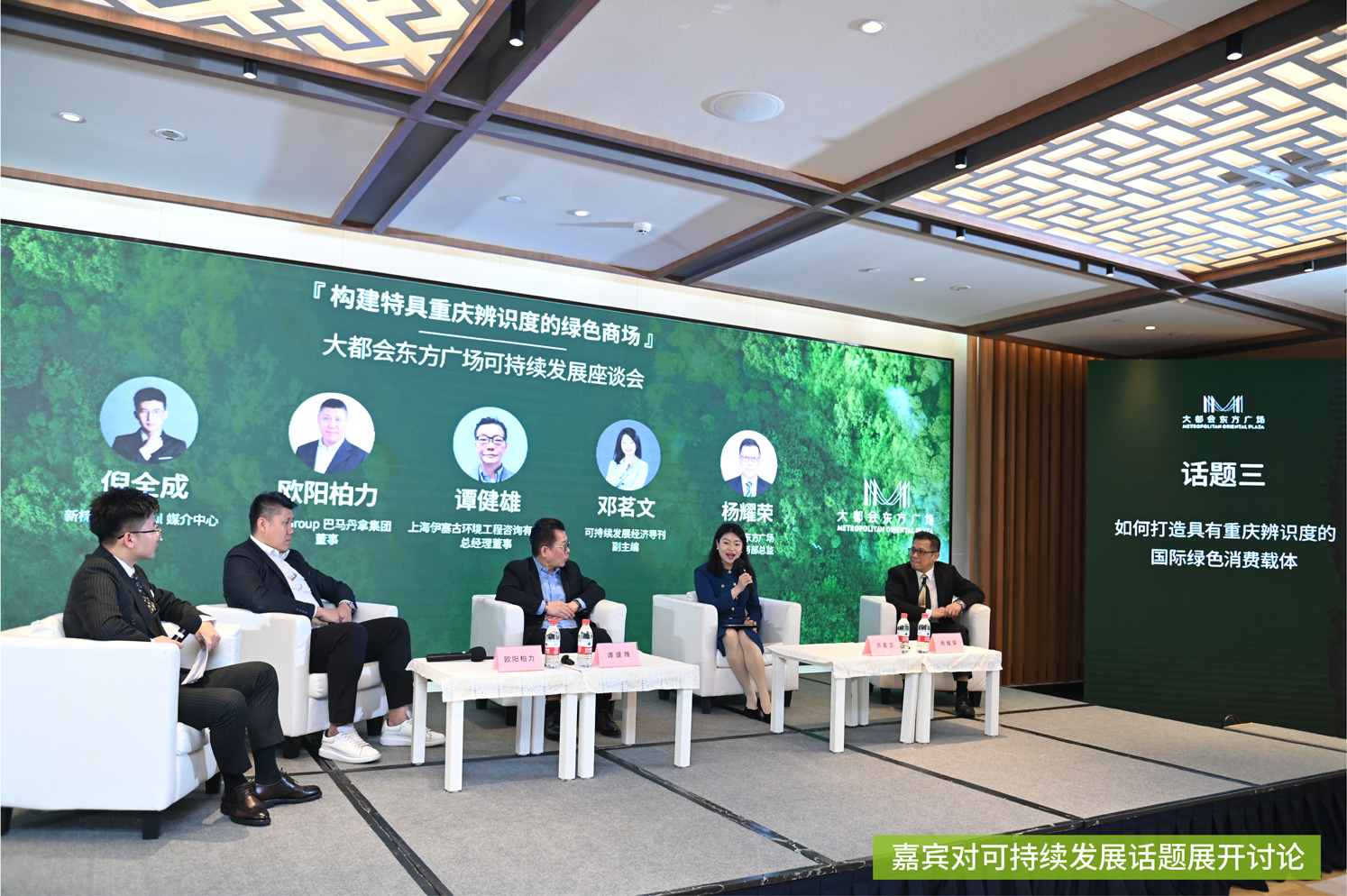 本次座谈会以“构建特具重庆辨识度的绿色商场”为主题,分别从“在中国可持续发展战略下,绿色低碳消费的发展趋势”、“可持续发展和ESG对消费者及品牌商家的影响”、“如何打造具有重庆辨识度的国际绿色消费载体”三个话题切入,探讨在绿色低碳消费的发展趋势下,如何推动可持续发展建设,帮助解放碑商圈绿色升级。