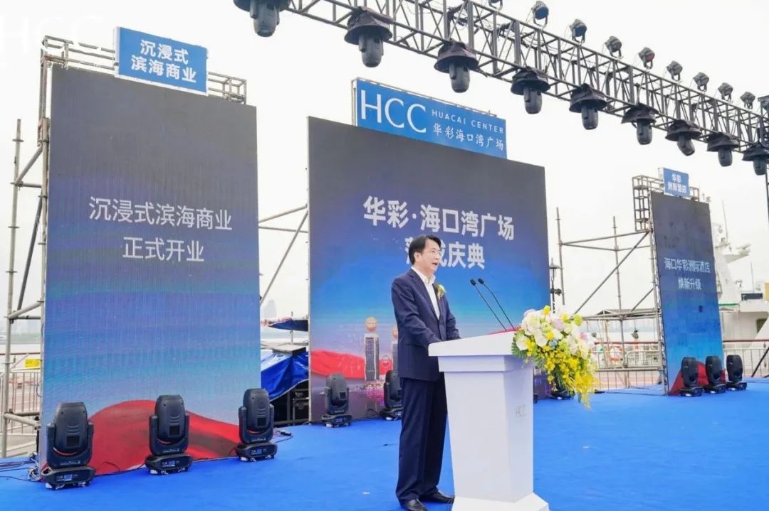 5月1日上午11时,HCC华彩·海口湾广场落成庆典仪式如期举行,海口市人民政府黄舸副市长、海口市人民政府李忠标副秘书长、美兰区委朱军书记、美兰区人民政府吉何忧副区长、华彩置业集团董事长谢茂全先生、洲际集团海南区域总经理Mr. Ryan、浩华管理顾问公司中国区业务发展董事陈红英女士、海南华彩投资控股有限公司总经理宁钧伟先生、华彩·海口湾广场总经理熊喜女士、华彩·杰鹏游艇会董事代表李春强先生及众多品牌商家共同莅临活动现场。同时还邀请了各界媒体、嘉宾出席活动,共同见证HCC华彩·海口湾广场这一具有里程碑意义的高光时刻。