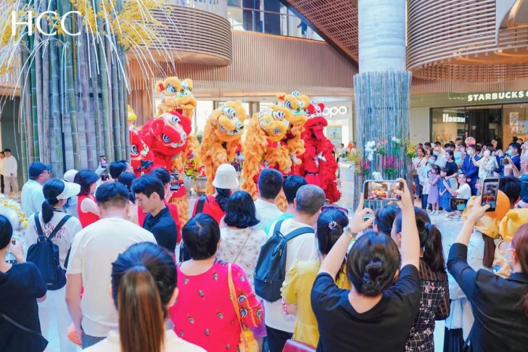 在万分期待中,各位领导共同完成升帆启幕仪式,风帆扬起的那一刻,现场掌声雷鸣,共同见证HCC华彩·海口湾广场项目正式落成!伴随着铿锵有力、热闹非凡的锣鼓阵阵响起,8头雄壮威风的瑞狮登台表演,各位领导为瑞狮点睛后,宁总(宁钧伟)、熊总(熊喜)完成接青,将这份财气在HCC华彩·海口湾广场绵延永续、事事顺遂吉祥!领导们在瑞狮的陪同下,进入商场巡游,为HCC华彩·海口湾广场带来祥瑞喜庆。