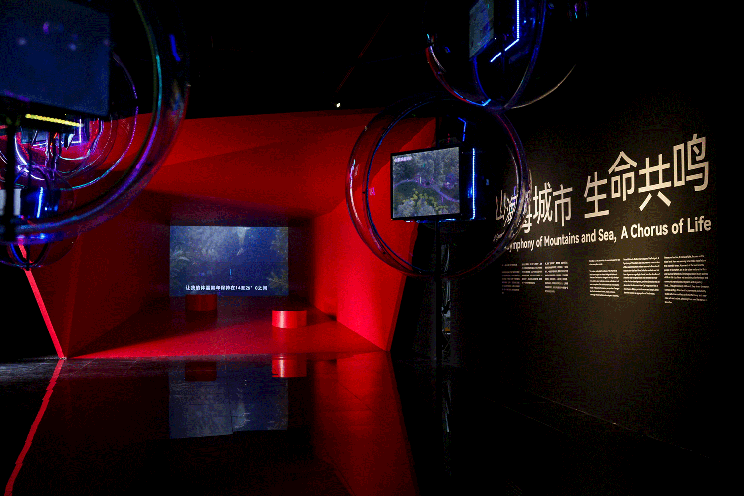 展览运用新媒体装置、虚拟现实技术等创新交互手法,带领观众穿越时空遍览深圳和谐共生的城市诗意,体验无限包容、缤纷活力的深圳文化,这也与深超总的规划理念相辅相成,即运用“一心双核、十字生境”的规划结构打造高密度都市的宜居绿洲,实现生态与城市双平衡。