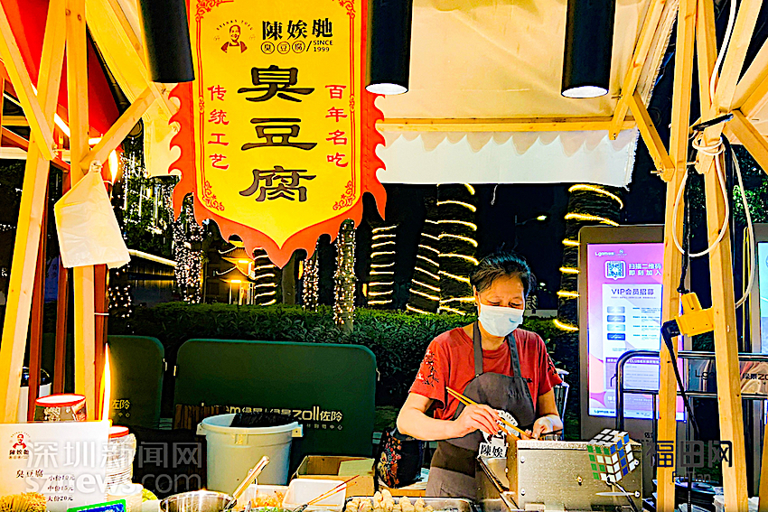 夜市“老字号”陈娭毑的臭豆腐,香港艺人李兴华、张景淳、罗天宇安利的地道鸡蛋仔,抖音上超火的网红烧鸟……各式各样的特色美食齐聚在福田沙嘴的这个古风感夜市——古肆营地。周边的居民和各地的游客能够在这一次性打卡多种网红小吃,享受美食的同时,也感受着这里的热情。
