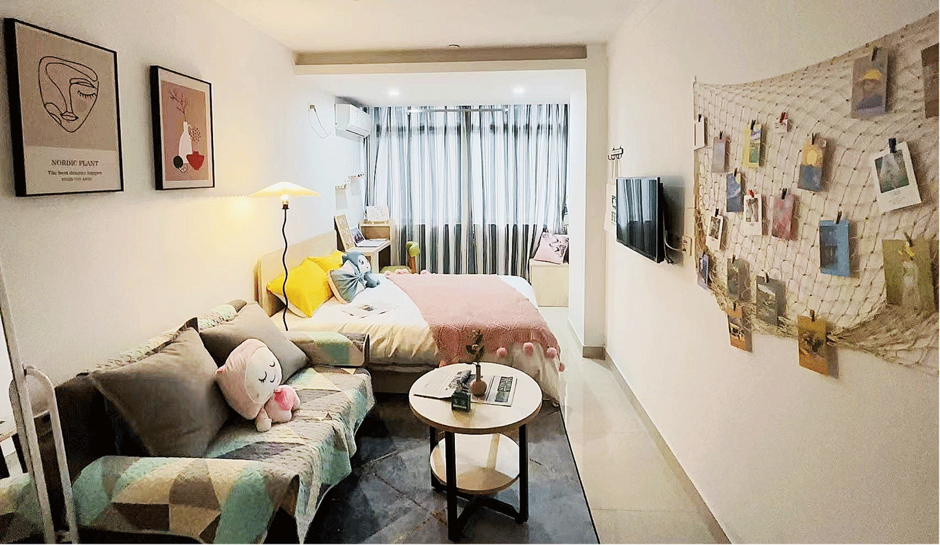 该店拥有温馨单间、精致一房一厅、舒适两房一厅共计359间房源,品牌家电家具、独立厨房、独立洗浴、网络光纤入户、物业 24小时监控、停车场等设施完善,拎包即可入住,可轻松为单身、情侣、家庭等不同住房需求的人群提供租住服务。