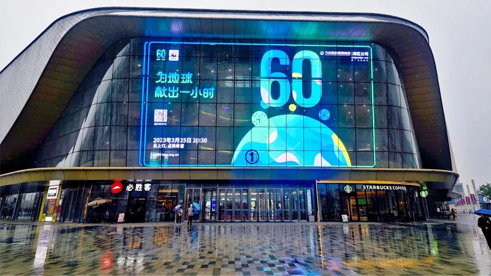 3月25日,作为“地球一小时”发起方世界自然基金会(WWF)的旗舰合作伙伴,万达商管南区120余个万达广场在地球日当天20:30同步举行“熄灯一小时”仪式,用实际行动支援全球节能减排。