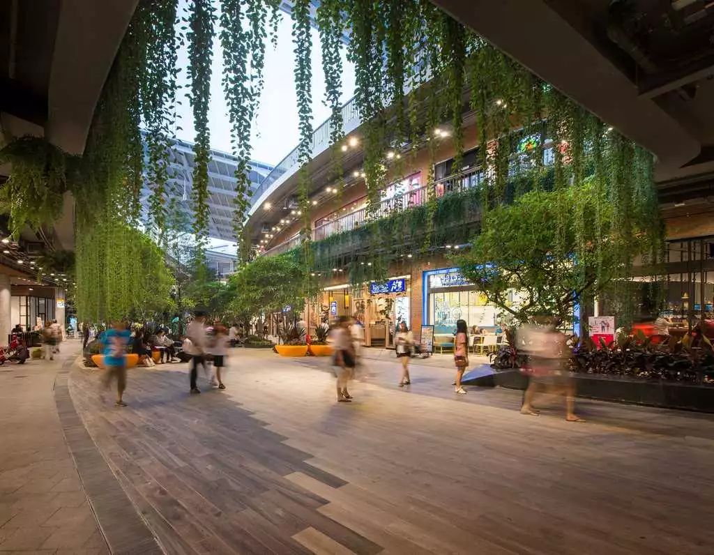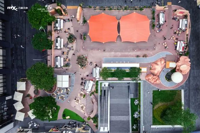 而在户外街区逐渐成为特色项目“标配”之后,商业街区也逐渐跳出了宽街+商业独栋的流行模式,越来越多更凸显与自然融合,打破室内室外边界的中间地带成为购物中心的香饽饽。而在品牌业态规划上,不少项目采取将部分空间“还给”公众的做法,将固定门店分布于外摆及天台,亦或者打造路面店,让户外街区更多作为引入快闪型门店、市集及不定期营销的场地。