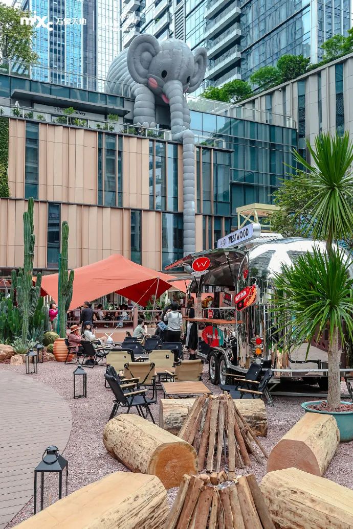 由此也让户外街区的运营受到关注。以今年五一期间深圳万象天地为例,五一期间,万象天地利用其户外街区的水广场空间,打造了超2000㎡游牧主题营地。游牧营地利用热气球、仙人掌绿洲、砂丘等元素设计,打造一个具有摩洛哥氛围的游牧生活空间,营造了具有沉浸实感的北非异域风情。