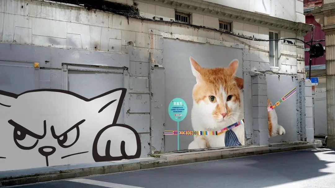 比如近期在上海外滩出现的“外滩猫街”。5月6日至5月31日,由上海复星艺术中心、BFC外滩金融中心、豫园商城联合打造第三届外滩艺术季,通过大型公共艺术作品、艺术展览、潮流集市、艺术论坛及工作坊等丰富互动体验,打造大豫园片区的一站式艺游旅程。为了强化街区和城市大众的连接,此次活动特别联合小红书官方宠物薯发起线上征集话题#送我家猫咪上墙#,面向上海全市征集可爱猫咪形象,被选中的猫咪经由艺术大使Tango创作后绘制在方浜中路老城厢墙面上,成为艺术季超人气打卡点“外滩猫街”,让老街成功焕活。