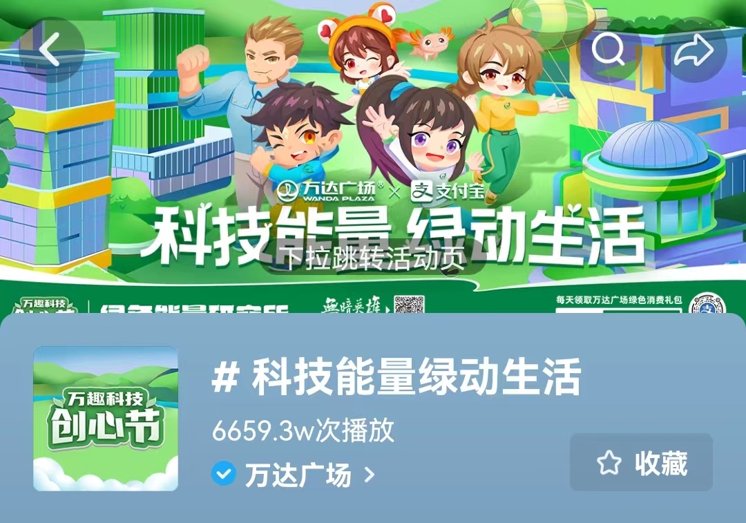 创新营销是考验购物中心运营能力的重要指标,亦是构建特色消费场景、打造差异化消费环境的必要条件。除了推出绿色营销“组合拳”,万达广场还携手品牌不断共创绿色联动新玩法,创造了良好的营销话题性和商业效果,为行业贡献推陈出新的营销思路。值得注意的是,在规模化战略的助推下,万达广场“万趣科技创心节”活动释放出的传播声量不言而喻。