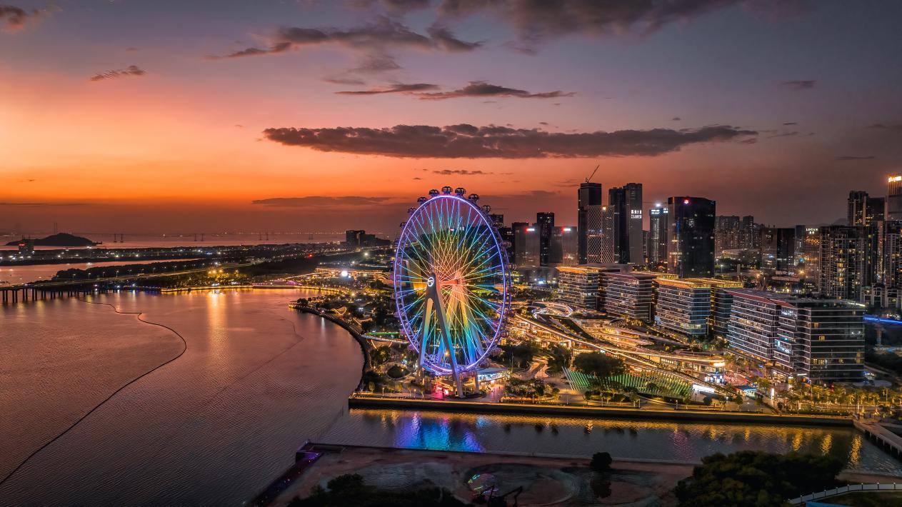 爱是,随着“湾区之光”摩天轮缓缓升高,不经意间四目相交时的浪漫。