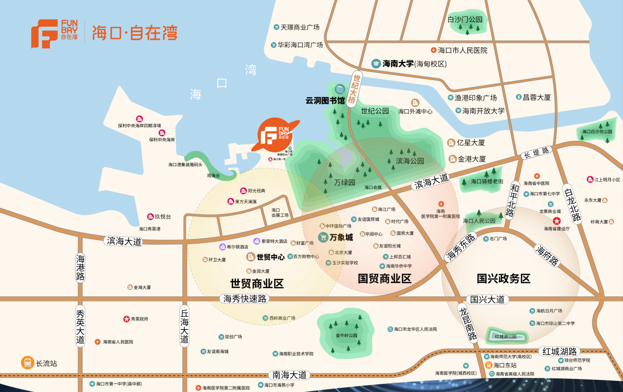 项目坐落于海口黄金北海岸线——观海路1号,这里不仅汇聚着海口湾岸线观景视野,同时拥有国贸世贸双心商圈的消费吸附力,周边辐射大量极具消费力的新中产客群和大基数的高净值消费群体。