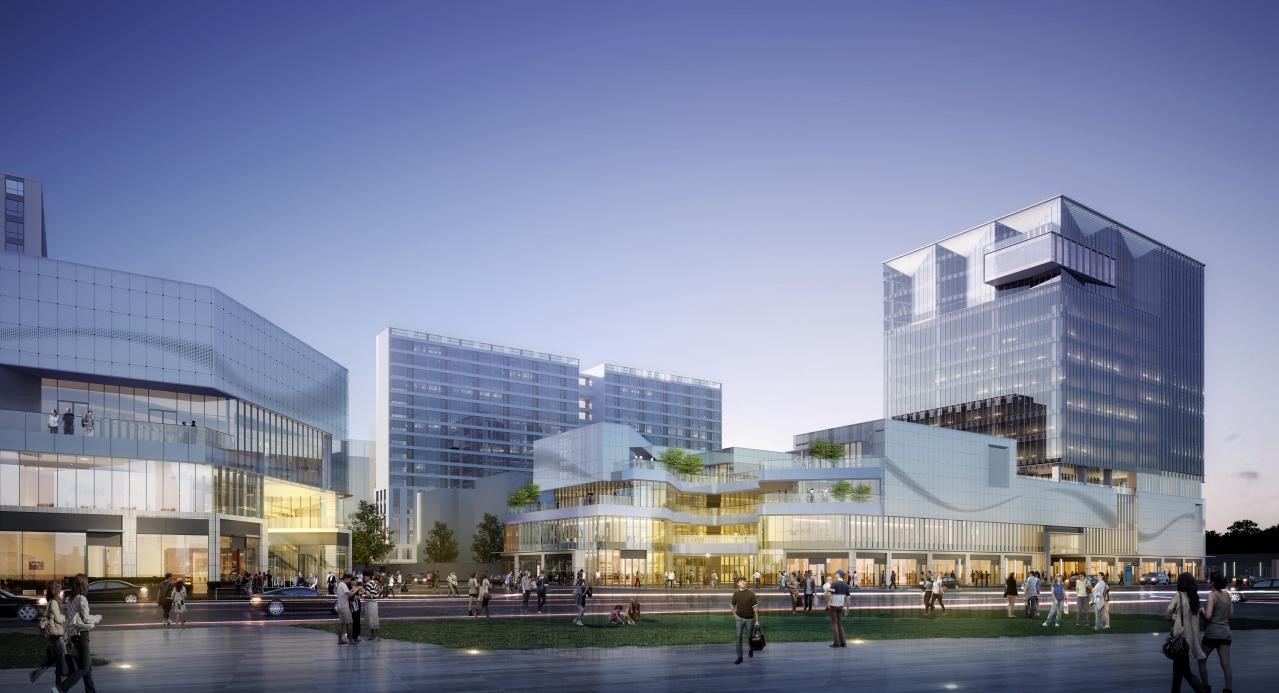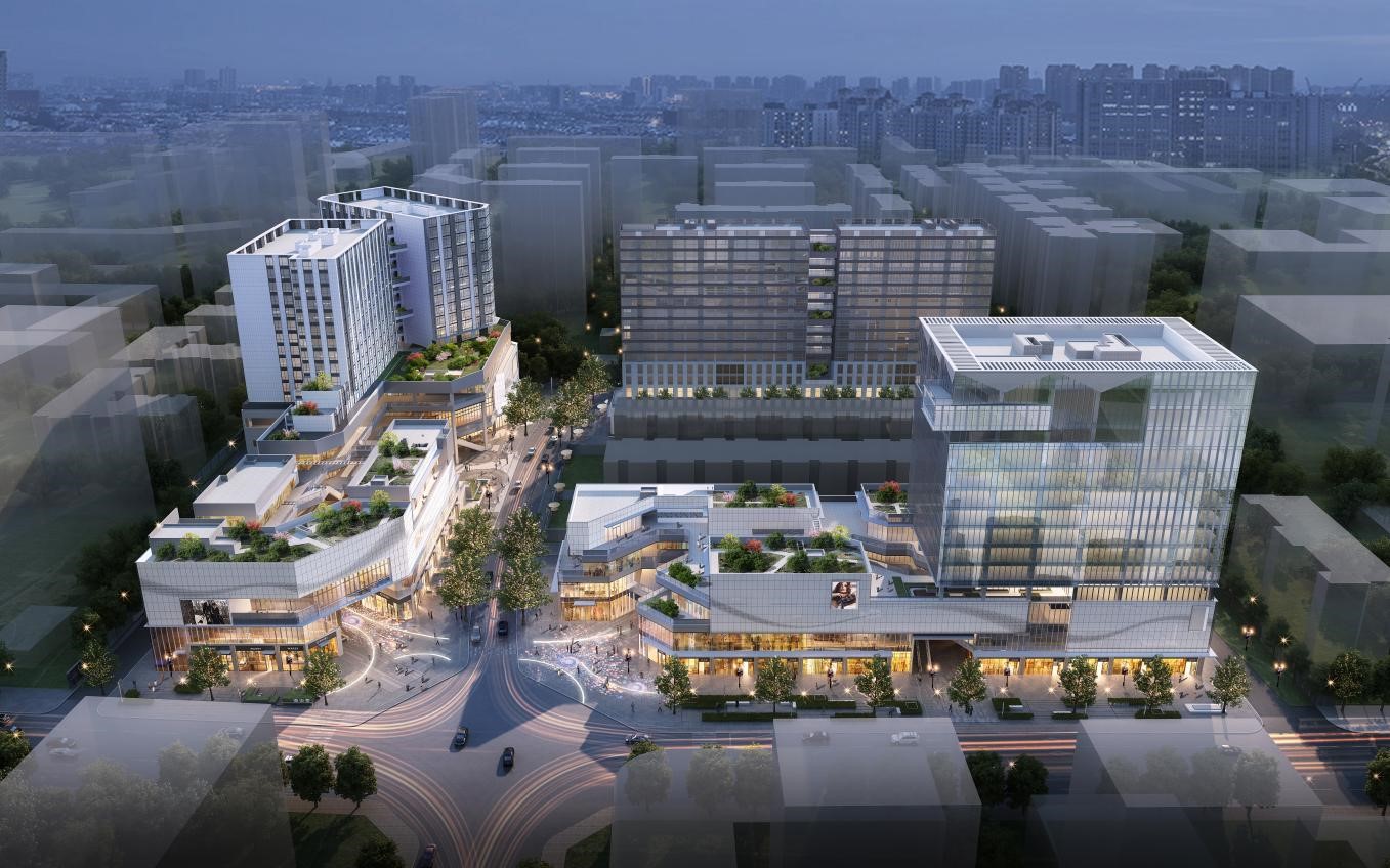 南山里拟建设14.8 万方的城市综合体,涵盖精致街区3.4 万方、星级酒店 1.1 万方及商业办公5.3 万方。商业 采用大面积玻璃幕墙,营造建筑的简约、通透及时尚感,并借以露天花园与外摆空间设计,拓宽商业延展面,烘托休闲与社交的氛围。