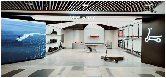3月,Moovi亚洲首店亮相上海K11,这也是品牌以“动力美学博物馆”命名的首家概念旗舰店。据了解,Moovi是由艺术家Vivienne Li创立的高端城市绿色出行品牌,为热爱艺术和户外运动的消费者们带来充满设计感的电动折叠自行车、越野摩托车、水上电动冲浪板等。