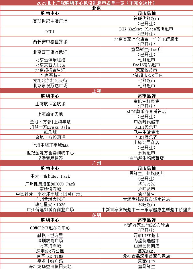 一秒Get2023“北上广深”购物中心「超市品牌」观察合辑