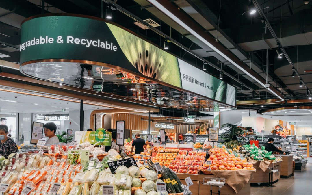 后有华润万家开出中国首家主打环保低碳概念的绿色门店——Olé低碳实验店。该门店位于深圳湾睿印RaiL IN,从建筑材料、消费场景、绿色品牌等维度,打造更绿色的商业空间。让消费者可以从购买环保商品、参与“回收再生产”公益活动等方面,轻松践行可持续生活方式。