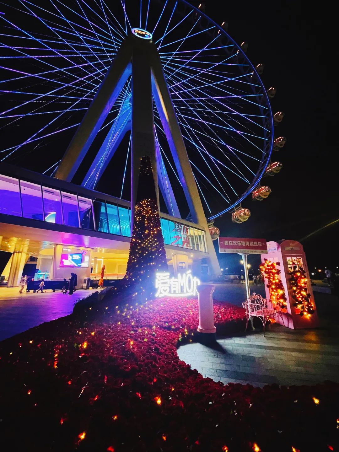 5月14日-6月18日,华侨城商管公司以爱之名,推出「爱有Mó力」IP,在“520”期间,开启全城热恋。此时,欢乐港湾“湾区之光”摩天轮下出现了深圳最大的“玫瑰空中花园”、摩天轮广场大型玫瑰花海、情人节斑马线等场景,营造爱的氛围感和仪式感。