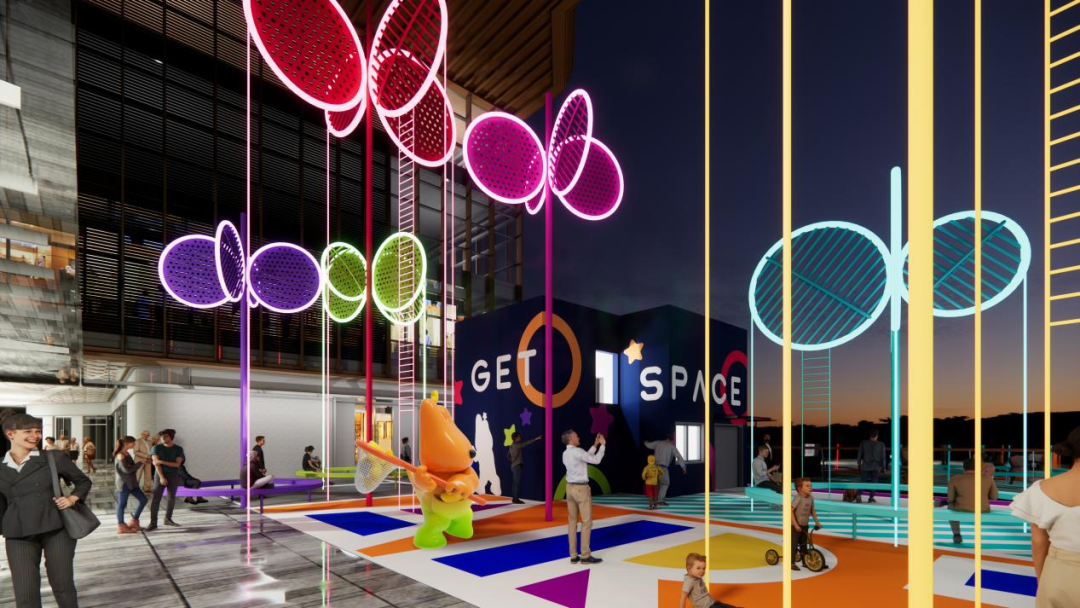 与此同时,星际云汇邀请竖梁社建筑旗下悬亮⼦环境艺术设计团队主导专属场景打造,将色彩维度、形式维度、参与维度融入到场景设计中,大胆运用香港乃至新加坡商业的水彩色系,创新性地把广东附带的时尚气质和亚热带特色成功展现出来。