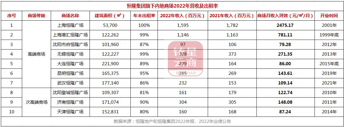2022年末内地布局10座商业综合体,内地商场全年营收46.07亿