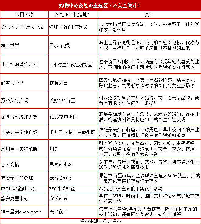 袁帅表示,包括位于交通便捷、繁华商圈附近的大型购物中心、集结多种娱乐设施的综合性购物中心以及餐饮业较为发达的购物中心,这些购物中心更容易为夜经济的繁荣提供支撑。