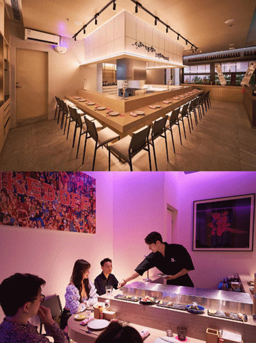 浪·烧鸟将东云色作为餐厅的主色调,像黎明时东方天空的曙色,也像备长炭燃烧时火焰的颜色,治愈人心的宝藏烧鸟店就该如此,给人带来勃勃生机。与普通烧鸟店空间设计大有不同,“浪·烧鸟”拥有几个独立专属空间的外摆,浪漫优雅。唯一的包厢“浪隐”,内置随处可见浪里浪气的装饰:飞线艺术家合作打造的“浪”字、价值不菲的《Wanked Off》版画、各种浪荡不羁的岛国手办……既是一个有情感联系的空间,更是走在浪潮尖端的文化聚集地。