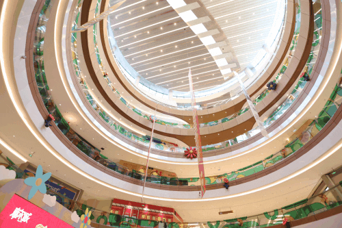 在内部空间上,依托自身的地形特点,韶关摩尔城利用楼梯、斜坡、台阶等垂直高差,巧妙的打造了“三首层”设计,形成螺旋形循环,让消费者可以通过不同点位快速抵达各个楼层,大大提升了购物中心的商业价值。