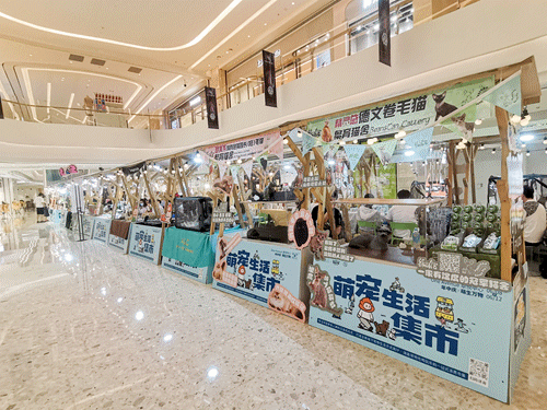 在消费狂欢的节点,线下购物中心除了优惠、兑礼活动,该有的主题活动一般也不会少。此次年中庆,卓悦中心推出了两大市集活动。其中,“萌生万物”宠物集市于商场B2层中庭亮相。据铱星云商停留现场10分钟观察,来往的客流较少。据一位摊主预计,下午来的人会多一点。
