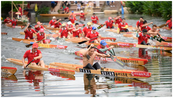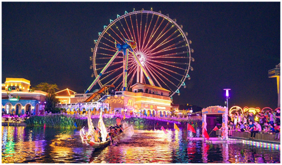 以顺德欢乐海岸PLUS为例,依托其将商业街区、主题公园、文化体验以及生态湿地融为一体的特性,不仅可以在场内上演百龙竞渡、再现水上版《速度与激情》,还能在龙舟上揽尽摩天轮下的一河两岸绝美景色,带来与众不同的龙舟体验。