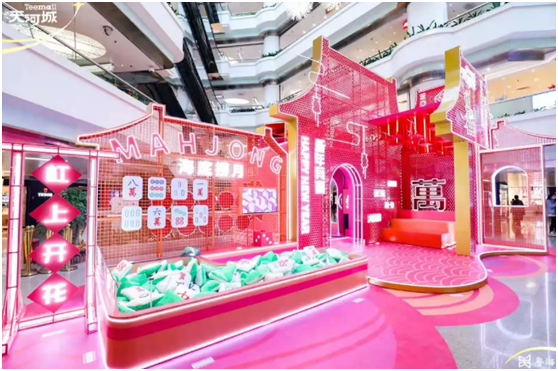麻将文化不仅是国粹文化,同样是广府文化中传承的精髓。广州天河城此前在春节期间打造了全国首个以“麻将”为主题的潮玩国粹展,粉彩绚丽的造型引人注目,整个乐园外围及内部四周都由喜庆的霓虹灯和喜闻乐见的麻将术语包围,可以迅速拉近与广州市民的距离;乐园外的趣味互动池“海底捞月”,吸引广大市民争相参与。