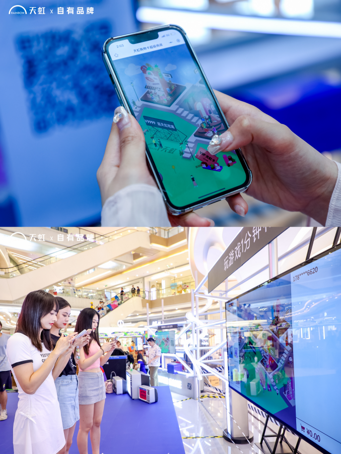 以市场需求逐步恢复为背景,以新消费趋势增长为契机,6月天虹聚焦全业态消费场景,在行业内首推出以购物卡为主体的线上H5游戏【挑战1分钟花光¥9999!】。同时,天虹联动旗下自有品牌与购物卡,将超百款商品搬到购物中心内,开展“超人气天虹购物卡X自有品牌品鉴大会”活动,与目标顾客深度互动,全业态促活购物卡用卡率,升级会员购物体验,持续建立顾客信任感和参与感。