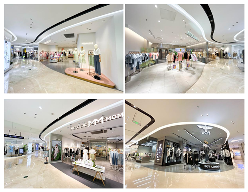 首先让出一部分中岛区域,将其打造为公共空间,并进一步优化商业双动线,让消费者选购商品更加便利,成功盘活整体客流。其次,三楼少淑女装区域增强了体验感、时尚感、品质感,更加宽阔的弧形动线带给人视觉惊喜;三楼童品区使用墙面彩绘增加氛围感,让目标客群感受到空间的友好;四楼运动休闲区域打造与消费者审美契合的消费空间,与品牌商实现双赢……以上种种既满足了客群多方面的购物需求,也让消费体验与空间感知上都有了明显跃升。